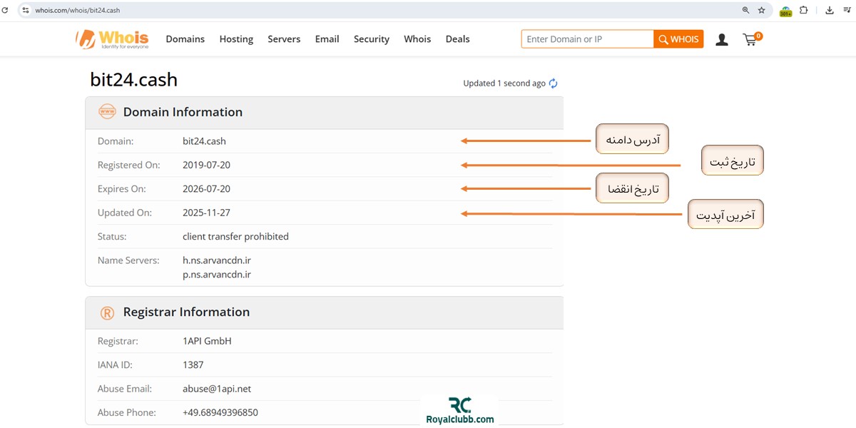 بررسی دادههای فنی سایت بیت ۲۴ نشان میدهد دامنه رسمی این صرافی با آدرس "bit24.cash" در تاریخ ۲۰ جولای ۲۰۱۹ ثبت شده و اعتبار آن تا ۲۰ جولای ۲۰۲۶ ادامه دارد، یعنی کمتر از یکسال دیگر و در تاریخ انقضا باید مجدد دامنه را تمدید کند.