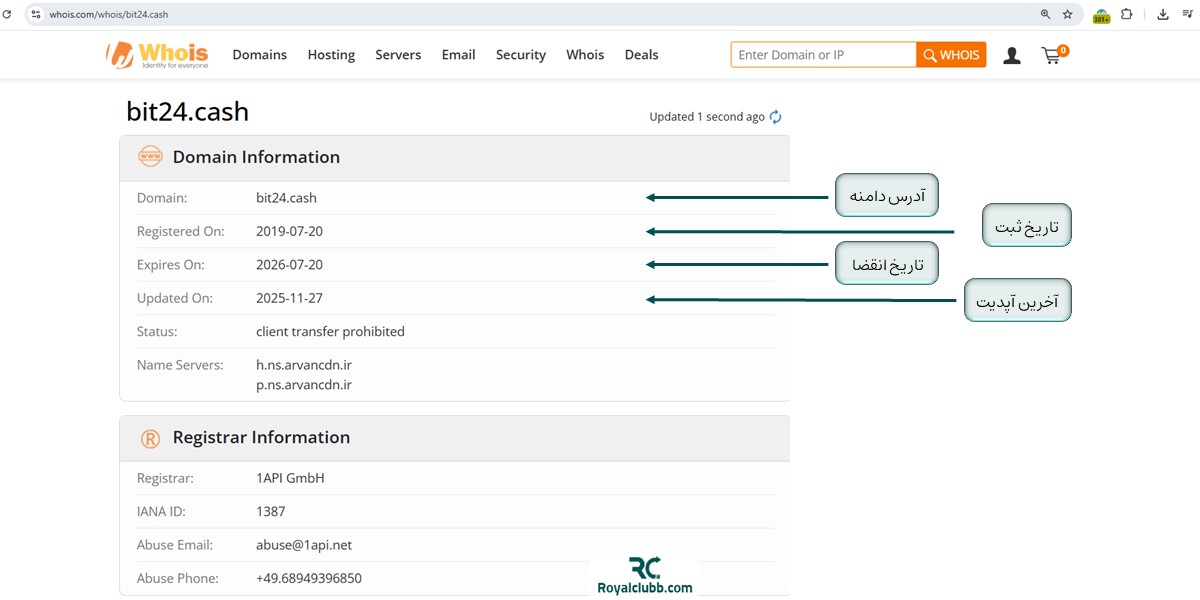 بررسی دادههای فنی سایت بیت ۲۴ نشان میدهد دامنه رسمی این صرافی با آدرس "bit24.cash" در تاریخ ۲۰ جولای ۲۰۱۹ ثبت شده و اعتبار آن تا ۲۰ جولای ۲۰۲۶ ادامه دارد، یعنی کمتر از یکسال دیگر و در تاریخ انقضا باید مجدد دامنه را تمدید کند.