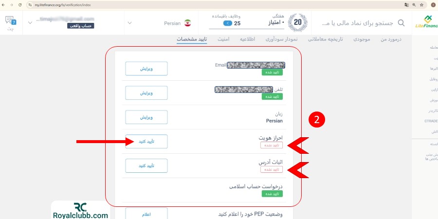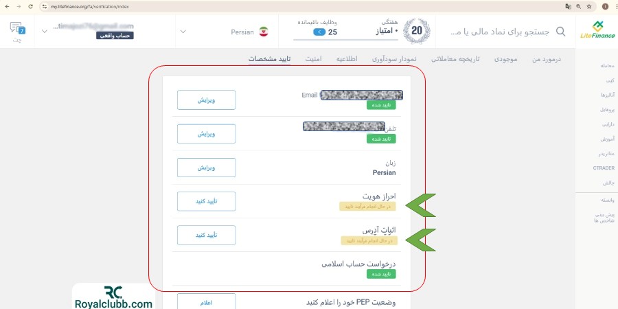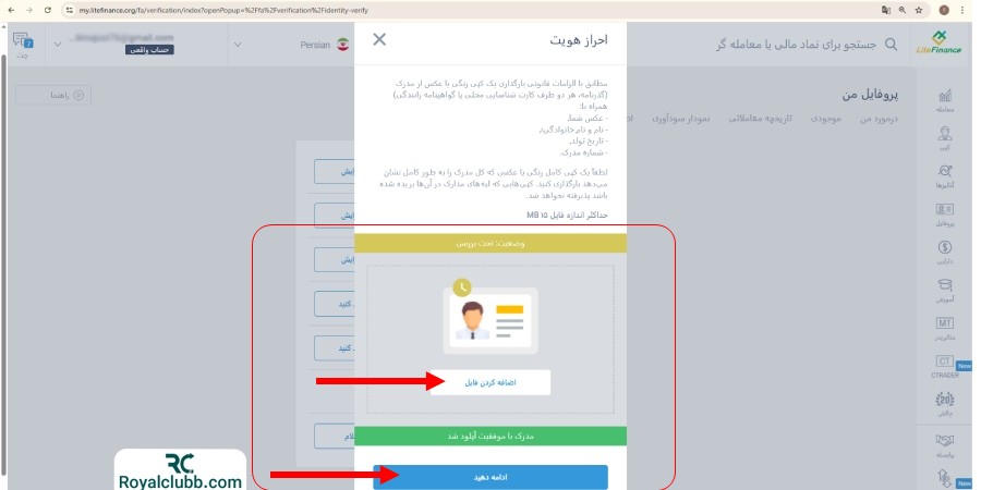 برای ترید در بروکر لایت فایننس، ابتدا باید احراز هویت شخصی و محل سکونت خود را تکمیل کنید. در این محتوا از رویال کلاب مرحله به مرحله در کنار شما هستیم تا به آموزش تصویری احراز هویت و مدارک لازم برای آن بپردازیم.